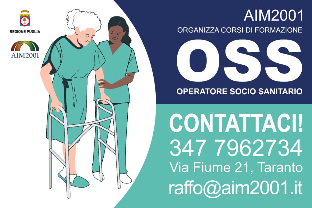 Adesioni ancora aperte per il nostro CORSO OSS presso la sede di Taranto, in Via Fiume 21 Per info: 347 7962734 raffo@aim2001.it