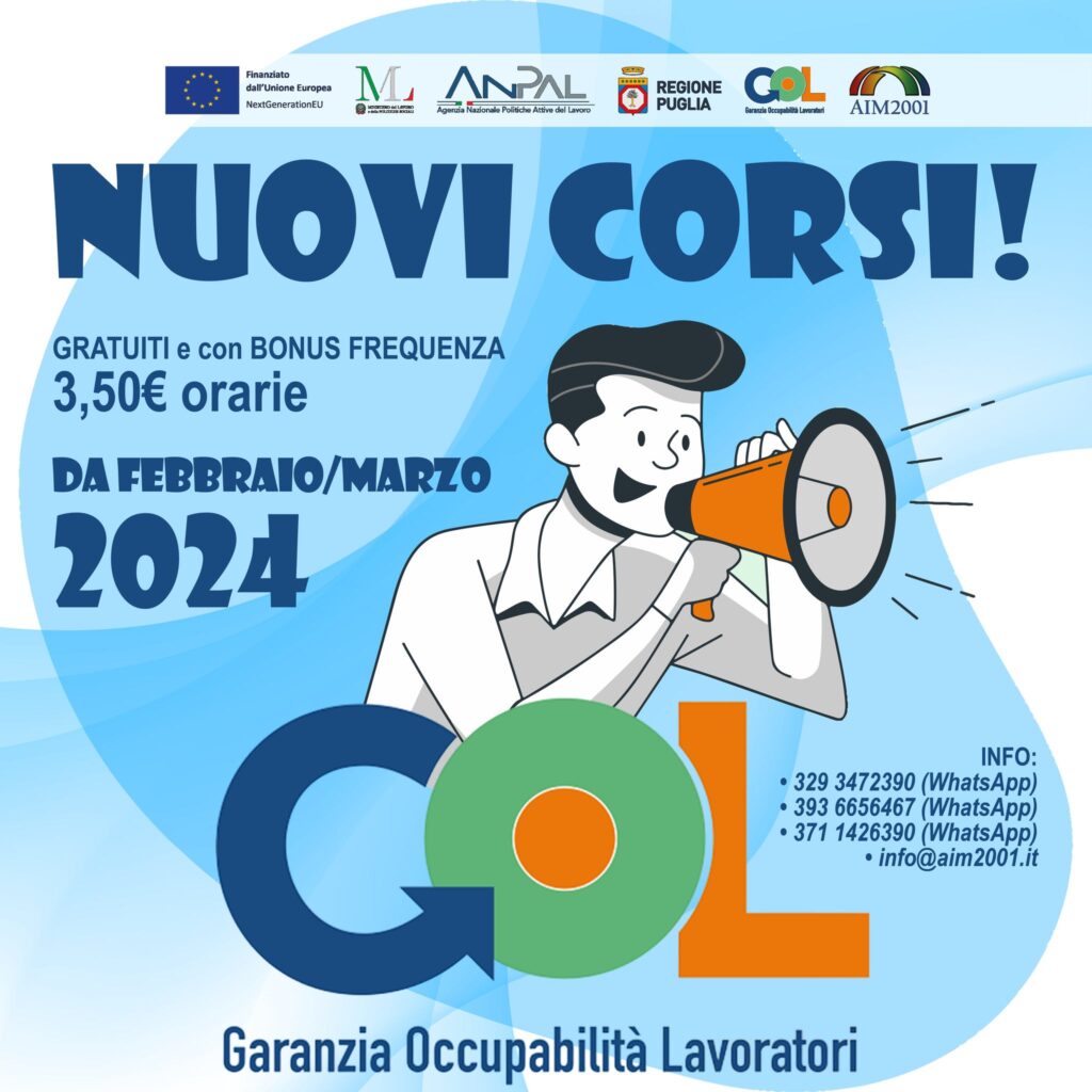 Si è avviato senza alcun intoppo il primo corso dell’avviso 3 dell’iniziativa GOL. Il corso prevede una frequenza totale di 200 ore, spalmante in circa due mesi di corso caratterizzati da lezioni di 6 ore giornaliere.